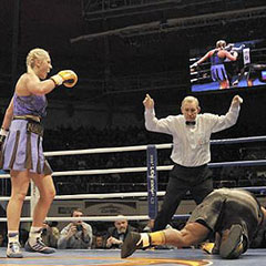 Абсолютная чемпионка мира в суперсреднем весе Наталья РАГОЗИНА по прозвищу Кувалда победила нокаутом Памелу Лондон и завоевала вакантный титул чемпионки мира по версии WIBF в супертяжелом весе.