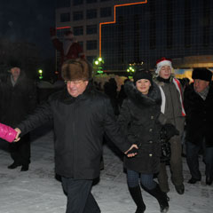 В четверг, 17 декабря, аким области Сергей Кулагин торжественно зажег иллюминацию главной новогодней елки на площади перед областным акиматом. Это событие должно было произойти в День Независимости, но было перенесено из-за сильного мороза и снегопада.