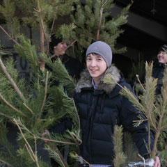 В следующей по маршруту СШ № 17 морально поддержать ребят, грузивших елки на морозе, вышла директор Куляй БЕРТАЗИНА. Она рассказала, что участие учеников в акции традиционно влияет на рейтинг классов. В это легко верится, потому что сосен откровенно много. Когда уложенные в кузов деревья стали норовить выпрыгнуть обратно, мы смирились: одним рейсом здесь не обойтись. Превратившие грузовик в колюче-мохнатый лесок на колесах 125 сосенок отправились по второму адресу: на ул. Сибирскую, 11/13. Андрею КУНЦУ мы завалили подарком вход в ворота, но он обрадовался.