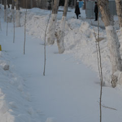 Деревья по ул. Павших Борцов в Костанае массово посадили в середине января - впритык к старым