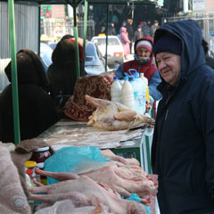 Все места цивилизованной торговли в Костанае принадлежат частным лицам. Они диктуют свои требования, свои условия и цены. У сельчан, продающих свой товар за забором официального рынка, цены на порядок ниже, есть свои наработанные клиенты. И в условиях кризиса их явно стало больше.