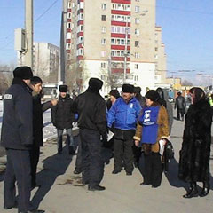 акимата. К зданию подтянулись полицейские машины. Происходящее сотрудники