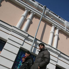 Подъезжаем к городскому акимату. Практически над входом висит огромная сосулька. Очевидно, что сбить ее никто не пытался, но меры безопасности чиновники для себя предприняли. По периметру акимат огорожен красными ленточками, на которых висят таблички: «Осторожно, опасность». Огромные сталактиты свисают над тротуаром на Русском театре драмы и кукол, на здании архитектуры, на краеведческом музее, на спортивном клубе «Динамо», на кафе «Час пик». Но около них ни красных ленточек, ни табличек с предупреждением об опасности мы не нашли.