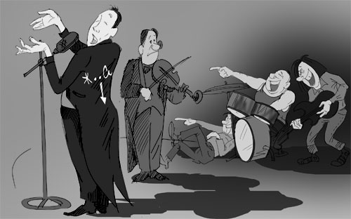 Я объявляю номер в том же стиле и чувствую за спиной странное оживление. Поворачиваюсь аккуратно - солист со скрипачом в образе, такие проникновенные, одухотворенные, а музыканты ржут как дикие, согнувшись в три погибели. Мы с администратором в недоумении, что там приключилось, а у гитаристов с барабанщиком аж слезы из глаз летят. Администратор из-за кулис шипит, руками машет, но процесс неостановим. Я тоже уже за кулисами, выглядываю и - вижу! У нашего солиста, который весь в образе, на спине мелом крупно так изображено: «Ж..а» и - стрелочка вниз, указывает на объект. Зрителю изнанки певца не видно. А музыкантам - еще как! Я сам, когда это увидел, чуть ли не на карачках ползал за кулисами от смеха. Оказалось, это он сам и придумал. Шутку оценили все, кроме администратора, который оштрафовал музыкантов на 5 рублей за то, что те не соответствовали настрою песни и выбились из образа. Серьезные, между прочим, были деньги.