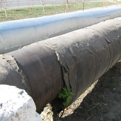 На месте корреспонденты «НГ» обнаружили трубы большого диаметра, которые сейчас хорошо изолированы практически на всем своем протяжении. Не закрыта часть длиной чуть меньше метра.