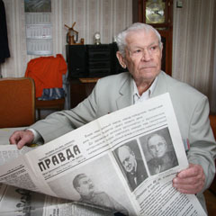 Его выступление опубликовано в том же номере «Правды». Экземпляр газеты передал в нашу редакцию Бертран Иосифович Рубинштейн, участник Великой Отечественной, у которого война была длиннее, чем у многих. Призвался в 1941 зеленым студентиком, участвовал в битве под Москвой. В апреле 1945-го он брал Кенигсберг. А в августе, когда по всей родной стране на залитых слезами перронах советские женщины встречали своих победителей, освобождал Манчжурию, дошел до Порт-Артура.