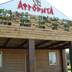 ...И чего только нет в античных легендах и мифах, вот только про трапезу богов они почему-то умалчивают. А ведь судя по доброй упитанности крылатых, ели-то хорошо, так что наверняка питались не только оливками. Еду к нашей новоявленной Афродите, чтобы узнать то, о чем умолчал старик Гомер. Несколько километров после «Трех четверок» - и я у цели. После съезда с трассы асфальт заканчивается, метров триста еду по гальке, вспоминая берег Адриатики. На площадке перед входом в богинево пристанище - ни богов, ни людей, ни авто. Открываю дверцу, вхожу: «Есть кто живой?» «Есть, есть, проходите...» - щебечет невесть откуда взявшаяся юная богинька. Небольшой зальчик впечатляет: в нем уютно сочетаются цвета камня и дерева, разбавляет палитру сочно вишневый с золотом и греческим орнаментом цвет добротных скатертей, салфеток, органзы штор. На стенах - портреты самой олимпийской красавицы, ее близких и дальних родственников. Стильная лестница манит меня наверх - там несколько уютных кабинок, причем в одной из них обнаруживаю восточный вариант застолья, при котором можно насыщаться полулежа. Есть и довольно просторный балкончик, на котором по вечерам можно с удовольствием покормить собой лесных комариков. Учитывая лесное местоположение богинева жилища, предполагаю, что удобства должны находиться на свежем лесном воздухе, но нет - и они добротно евростандартны.