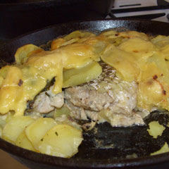 Когда-то шпиговать чесноком минтая нас научили вьетнамские студенты. Благодаря им эта до смерти осточертевшая в советские времена рыба приобрела новый вкус. А я недавно усовершенствовала уже вьетнамский рецепт. Получилось весьма аппетитно. Разделанный на порционные куски минтай надо на час утопить в молоке. Потом нашпиговать чесноком, посолить-поперчить, запанировать в муке и обжарить. Потом на том же жире довести до прозрачности изрядное количество лука с морковкой. Выстелить большей частью овощей дно толстостенной сковородки, поверх выложить рыбу, снова - овощи. Залить соусом из сметаны, наполовину разбавленной молоком, в который также добавлено несколько кусочков мягкого сливочного сыра и пара измельченных зубчиков чеснока. Запекать до золотистой корочки.