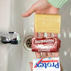 Здесь требуется отступление. Интернет-сайты полны сведений о том, что все мировые производители используют триклозан: и Palmolive-Colgate, и Camay. Однако, чуть не «вывихнув» глаза и исследовав десяток разновидностей мыл и шампуней, указаний на наличие в них триклозана я не нашла. Одно из двух. Либо к нам не завозят именно антибактериальные линии их продукции, либо эта информация утаивается. В таких же сомнениях я изучала рынок дезодорантов и стиральных порошков. На их упаковке триклозаном и не пахло, хотя стоит отметить - сведения о том, что вообще содержится в порошках, крайне скудны.