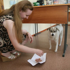 - Особенно Кукле скучно в выходные дни, когда в университете никого нет. Она скулит, воет, а когда мы приходим, не знает, куда деться от радости. Студенты, преподаватели приносят ей лакомства, игрушки, вкусные косточки, все интересуются состоянием ее здоровья. К себе, увы, Кукляшу, которую я очень люблю, забрать не могу: у меня дома живут кошки. Но мы уже нашли для нашей красавицы добрых хозяев. Когда будем переселять Куклу, построим ей будку и будем обязательно навещать на новом месте!