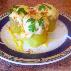 Из кабачков с грибами - по вкусу они очень подходят друг другу - можно приготовить и второе. Молодые кабачки 7-8 см в диаметре с нежной кожицей разрезать поперек на части по 3-4 см, удалить часть мякоти с семенами, придав кабачкам вид чашечек. Их отварить до полуготовности в подсоленной воде (5 мин.), затем откинуть на сито, чтобы стекла вода, запанировать донышки в муке и немного поджарить.