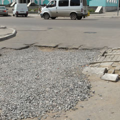 Сейчас щебень с остатками асфальта просел до такой степени, что по этому месту не могут проехать легковые машины. Причем объехать данный участок, соблюдая Правила дорожного движения, невозможно. Из-за участившихся в последние дни дождей яма на глазах увеличивается в размерах.