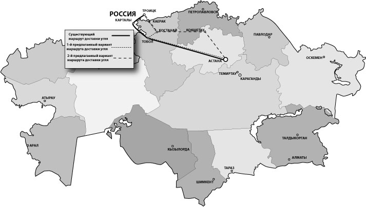 Существующий и планируемые маршруты доставки угля из Экибастуза на Троицкую ГРЭС