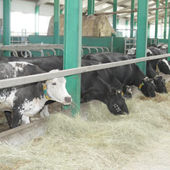 Язык не поворачивается назвать их скотобазами по аналогии с железобетонными коробками советских времен, хотя это именно помещения для содержания молочных коров. То, что прежде именовалось проходом между кормушками и стойлами, сегодня - кормовой стол, напоминающий шведский. Ибо монокорм, приготовленный в миксерах из сенажа, фуражного зерна, силоса с добавлением макро- и микроэлементов присутствует на этом столе круглые сутки. Здесь же соль-лизунец янтарного цвета, привезенная из Германии. В янтарь ее превратила патока, вкус которой коровкам намного приятнее горько-соленого. Обилие солнечного света и свежего воздуха вместо сохранившегося в памяти слезоточивого аммиака, разъедавшего даже бетонные плиты перекрытий. Черно-пестрые племенные буренки вальяжно прогуливаются по залу или стоят в очереди... почесаться. В зале установлены станки с крутящимися щетками: зайдет животина в станок и по глазам видно - блаженствует.