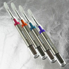 Очистка зубов новой щеткой происходит не столько за счет механического действия щетины, сколько за счет фотокаталитических свойств титанового стержня. Этот поток электронов действует на бактерии самым губительным образом. Стержень из диоксида титана никогда не теряет эффективность и не нуждается в замене - меняются лишь наконечники с щетиной. Для работы ионная щетка не нуждается в воде.