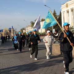 На пробег решились ветераны бегового спорта, марафонцы: Римма Воеводина, Курманай Исергепов, Беккул Садыков, Калкаман Жакып, Петр Шекетера, Сагындык Сармурзин, Владимир Сандусь и Сергей Биркле. Вместе с ними бегут курсанты академии КУИС Жасулан Садуакасов, Ерлан Нугманов.