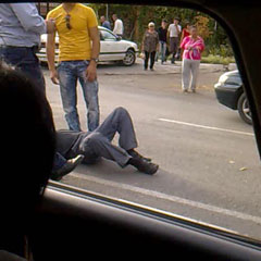 Очевидцы успели снять ДТП на видеокамеру мобильного телефона. На видео отчетливо просматривается, что авария произошла на встречной для внедорожника полосе. Пешеход получил травмы, по лицу у него текла кровь, но остался жив. К пострадавшему сразу подскочил водитель. По словам очевидцев, пассажир, похожий на акима Костаная, тоже вышел из машины. На записи видно, как этот человек ловит попутный автомобиль. К месту ДТП подъехала стоявшая неподалеку патрульная машина. Через несколько минут черный внедорожник «Р 009 АА» был отогнан в дорожный карман. Только после этого появилась вторая патрульная машина с государственным номером «Р 868 КР» и карета «скорой помощи».