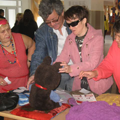 На ней за 50 тенге можно было купить совсем простенькую поделку из открыток или рамочку для фото, сделанную из затейливо сложенных конфетных фантиков. А за несколько тысяч тенге можно было приобрести изящные бисерные колье или оригинальный пояс из бус и стекляруса. Рядом с поделками многие авторы, проявляя бизнес-инициативу, разместили свои контактные данные, положили визитки.
