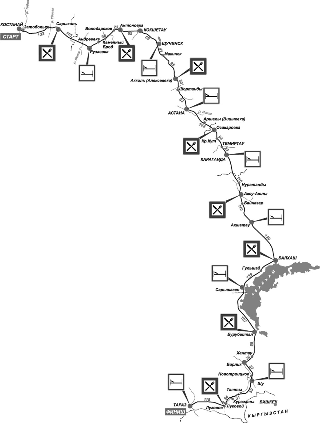 Маршрут пробега Костанай - Тараз