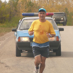 Верил в цель и Сергей Биркле. Он самый опытный участник пробега - на счету уже 77 марафонов, 2 суточных пробега и теперь уже 2 эстафетных пробега на длинные расстояния.