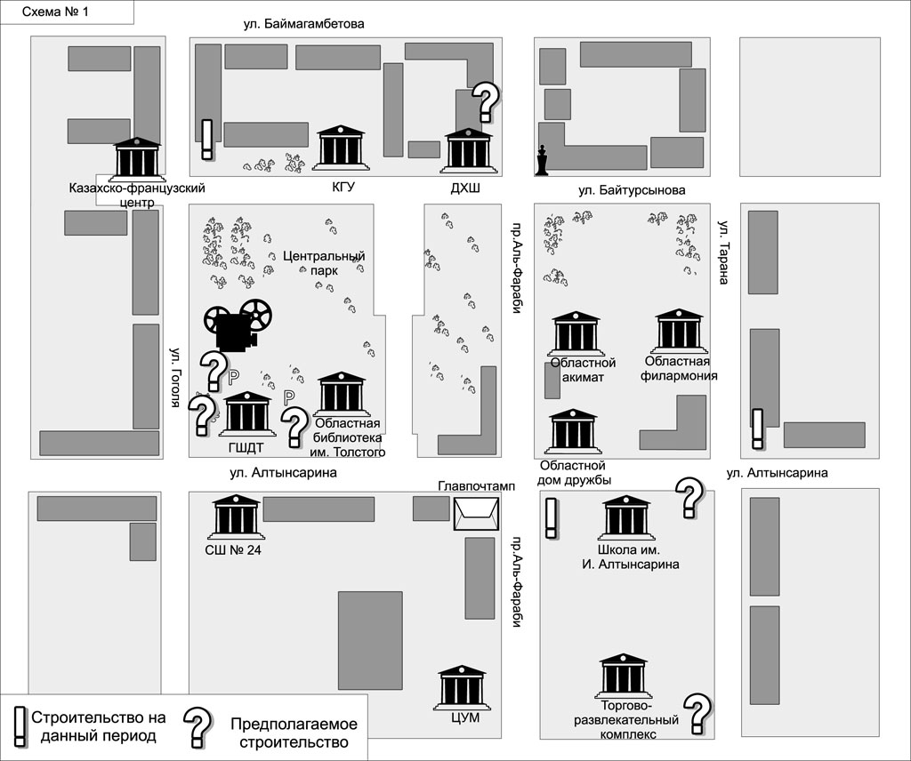 Схема предполагаемых "пятен" для будущей застройки центра Костаная_2