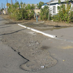 - Ямы здесь, что называется, одна больше другой. Образовались они довольно давно. Но никто не обращает на них внимания. Одна яма прямо на перекрестке улиц Сибирской - Баймагамбетова. А другая - чуть подальше, она занимает практически всю левую половину ул. Сибирской.