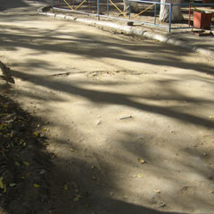 Вся эта картина предстала перед глазами корреспондентов «НГ», когда они прибыли по указанному адресу. Довольно широкий участок без асфальта возле дома по ул. Карбышева, 17, сломанные бордюры и железный забор. Все эти напасти аккумулировались возле торца дома и первого подъезда. От этого обстановка казалась еще более удручающей. Ведь чтобы попасть к остальным подъездам, необходимо преодолеть эти препятствия.