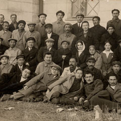 На фотографии, которая датируется 1928-1929 годами, встреча курсантов юридических курсов в Кустанае с народным комиссаром юстиции Жанайдаром Садвокасовым (в центре с тростью). Рядом с комиссаром (в белом шарфе) - Дора Павловна Дорофеева, член коллегии НКЮ, заместитель прокурора Казахской Республики. Ей была поручена организация первых юридических курсов.
