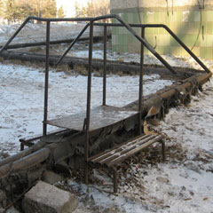 На месте корреспонденты «НГ» увидели, что дома № 5 и № 5 «А» окружены теплотрассой небольшого диаметра. То, что закрывает эти трубы, мало похоже на добротную изоляцию. Это мелкие мини-клочки изоляционного материала, местами его нет вообще. Между этими двумя домами расположен железный переход, но это не спасло трубы от износа изоляции.