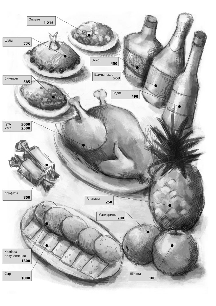 Корреспонденты «НГ» составили новогоднее меню, включив в него наиболее традиционные блюда, и отправились по магазинам выяснять, что сколько стоит. Цены на продукты заметно разнятся. Например, банку зеленого горошка одинакового веса можно купить как за 145 тенге так и за 190. Поэтому в расчетах мы использовали средние цены.