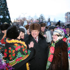 Главную елку в Костанае традиционно зажигают 16 декабря - на День Независимости. В этом году мероприятие было назначено на понедельник, 13 декабря, но потом перенесено на вторник. Поэтому людей на церемонии было немного. Аким области сначала пошел общаться в народ. Его сразу окружили нарядные старушки, которые в ходе оживленного разговора попытались украсить новогодней мишурой и Сергея Кулагина.