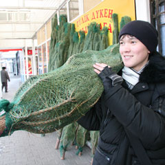 - На таможне мы проходим обязательный фитосанитарный контроль, - сообщил «НГ» продавец Алмат. - Там же на каждой сосне ставят штамп. Все сосны мы везем упакованными, чтобы они не облетели. Если клиент просит, то снимаем упаковку при нем.
