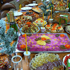 Знатоки, сведущие в таких мудреных вещах, как астрология и гороскопы, утверждают, что именно эти две зверюшки - символы наступающего 2011 года. Ну все-таки свои ребята, не какие-нибудь синяя обезьяна или пурпурный тигр, вкусам которых еще надо умудриться угодить. А с этими все ясно. Один - убежденный вегетарианец, другой - любитель рыбки, птичек и молочка. В нашей подборке рецептов их пристрастия учтены.