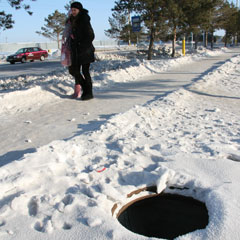 - У нас в восьмом микрорайоне по дороге на остановку приходилось идти мимо трех открытых колодцев, - говорит она. - Два из них закрывают тепловую камеру, поэтому мы позвонили в ГКП «КТЭК» и вскоре колодцы закрыли. Но постоянно открытым остается один колодец, закрывающий ливневую канализацию. На нем уже несколько лет отсутствует крышка. Весной там потоки талой воды. Мимо люди ходят, стоит зазеваться - провалишься. Хорошо, что тепловые люки сейчас закрыли, но все равно их периодически местные бомжи открывают, чтобы погреться внутри тепловой камеры.
