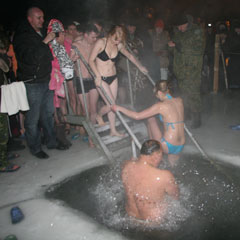 Рубили прорубь спасатели двое суток. В этом году над ней установили специальный осветительный столб, который обычно используется для аварийных работ. Окунаться в Тобол костанайцы начали еще в 9 часов вечера. А в первом часу ночи на пляже уже скопилось около 200 машин. Купались под присмотром сотрудников дорожной полиции и спасателей. Народ традиционно заходил погреться в бане, а потом кидался в прорубь, три раза уходя с головой под воду. Затем бежали около 30 м до своих машин.