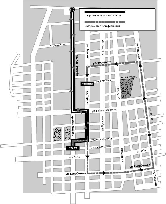 В 15.30 стартует второй этап, который финиширует в 17.00 во Дворце спорта. Там состоится чествование огня и гала-концерт.