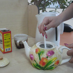 Наверно, каждая домохозяйка сталкивалась с этой проблемой - как очистить от заварочного налета носик чайника. Это особенно сложно сделать, если носик у чайника тоненький, изогнутый и отгорожен от основного сосуда стенкой с дырочками. Недавно в одной из телепередач для домохозяек рекламировали очень легкий способ для чистки чайника, который якобы не требует никаких усилий. Мы решили его испытать.