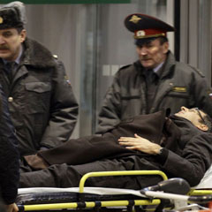 Пострадавшего при теракте в аэропорту «Домодедово» увозят в машине «скорой помощи»