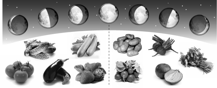 То, что растет над землей, нужно сажать на растущую луну, то, что под землей, наоборот, на убывающую