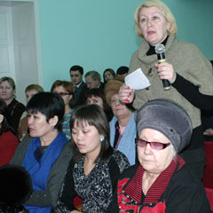 - Я прослушала доклад и захотела жить в вашем городе, - заявила она. - У меня в городе другая картина: зарплата снизилась по сравнению с 2007 годом, не было создано пяти тысяч новых рабочих мест, наоборот - на дизельном заводе люди отправлены в отпуска, уже 2 месяца не работают. Иная ситуация и с дорогами. Я хочу затронуть тему цен на продукты. За повышение все ругают спекулянтов и никто ни разу не сказал, что цены повысились из-за того, что выросли тарифы. Но почему ни разу мы не услышали от власти о мерах, которые будут применяться к коммунальщикам за повышение тарифов? И когда будет осуществляться государственный контроль над соблюдением правил содержания жилищного фонда? У нас все пущено на самотек!