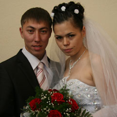 Он влюбился, как только увидел ее за прилавком в магазине. Но познакомиться с девушкой мешали покупатели. Данияр подошел позже, когда все разошлись. Молча стоял, смотрел на нее и улыбался. Санию смутил его взгляд, и она сказала: «Если вы ничего не покупаете, то можете пройти дальше». Тогда парень честно признался, что хочет познакомиться... Этим же вечером он провожал ее домой, а через полгода молодые люди сыграли свадьбу.