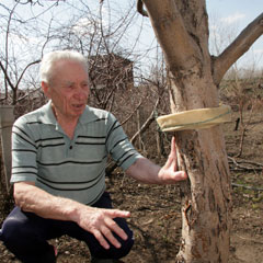Ещё до распускания почек Подземельный проводит химическую обработку плодовых деревьев и кустарников. Ранней весной на деревья (на участке растут яблони) он вешает «ловчие пояса».