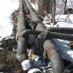 - Возле дома № 4 в нашем микрорайоне очень длинная и разветвленная теплотрасса. На нескольких ее участках нет ни единого кусочка изоляции. Трубы довольно большого диаметра, «голые» они давно. Но никто не обращает на них внимания.
