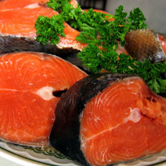 Первое, что делает покупатель - выбирает глазами: по внешнему виду, упаковке, этикетке. Конечно, внешние признаки продукта могут о многом сказать. Цвет рыбы должен быть естественным и равномерным. Если цвет неоднороден, четко прослеживаются разводы, яркие и темные пятна, видна граница на разрезе - значит эта продукция окрашена. Некоторые производители делают это для того, чтобы придать продукту более привлекательный вид, иногда - чтобы скрыть, что использовалась не охлажденная, а замороженная рыба (после замораживания рыба теряет цвет) или была нарушена технология производства. Замороженная рыба не удерживает сок, потому что кристаллики льда разрушают ее структуру, мясо теряет нормальную консистенцию после посола, становится более сухим и рыхлым. Такую рыбу трудно нарезать, она распадается на слои. Еще один отличительный признак окрашенной рыбы - неестественно ровный цвет. Натуральный кусок рыбы всегда имеет более светлые прожилки.
