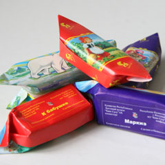 Под какими еще названиями можно найти известные конфеты: «Красная шапочка» - «К бабушке», «Мишка на Севере» - «Заполярье», «Мишка косолапый» - «Лесные жители», «Кот в сапогах» - «Маркиз», «Гусиные лапки» - «Гусята», «Дубок» - «Дубрава», «Ромашка» - «Камилла», «Буревестник» - «Буря», «Ласточка» - «Карлыгаш», «Маска» - «Амели», «Кара-кум» - «Кызыл-кум».