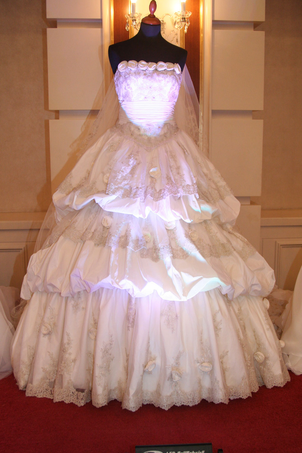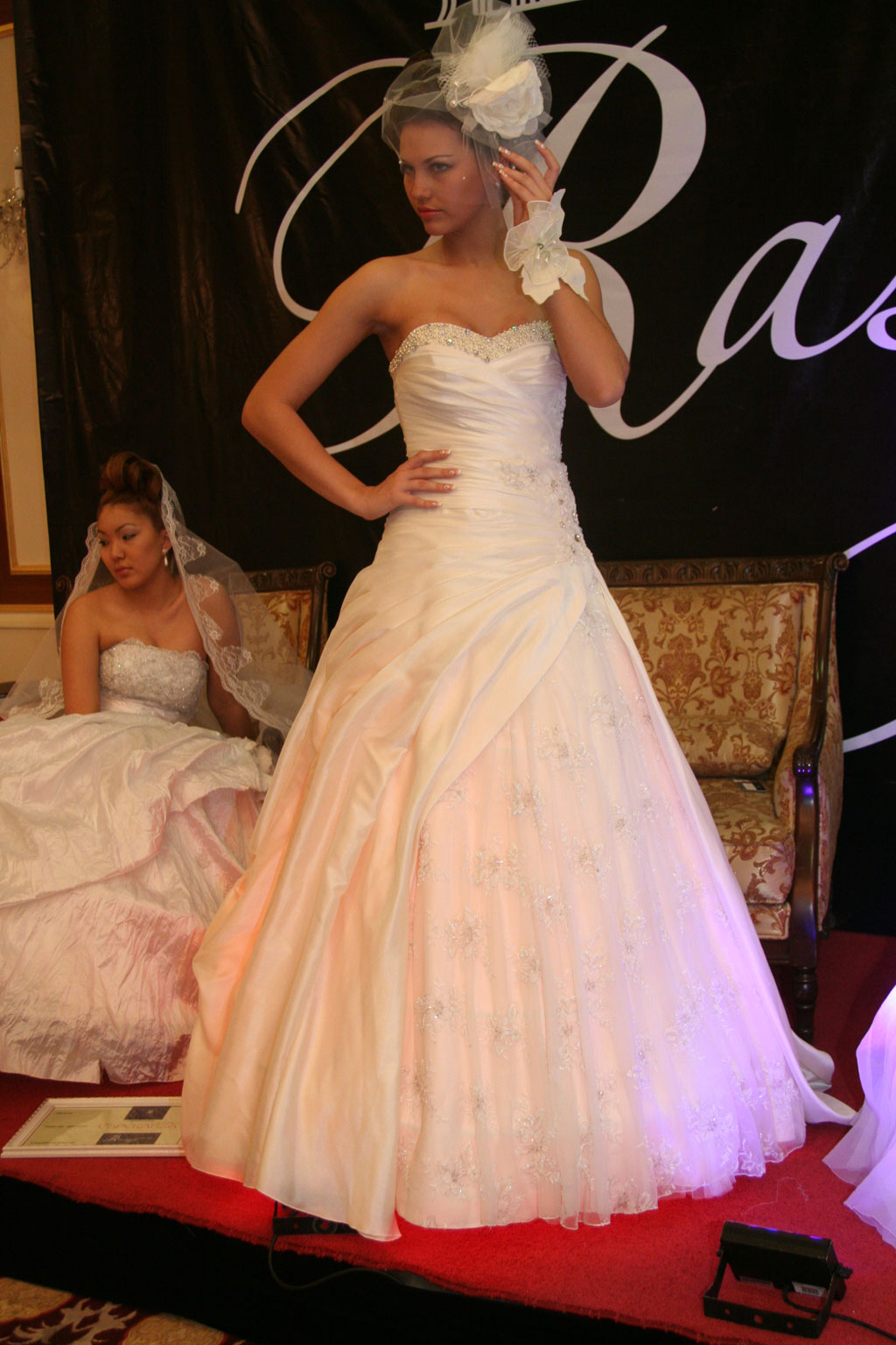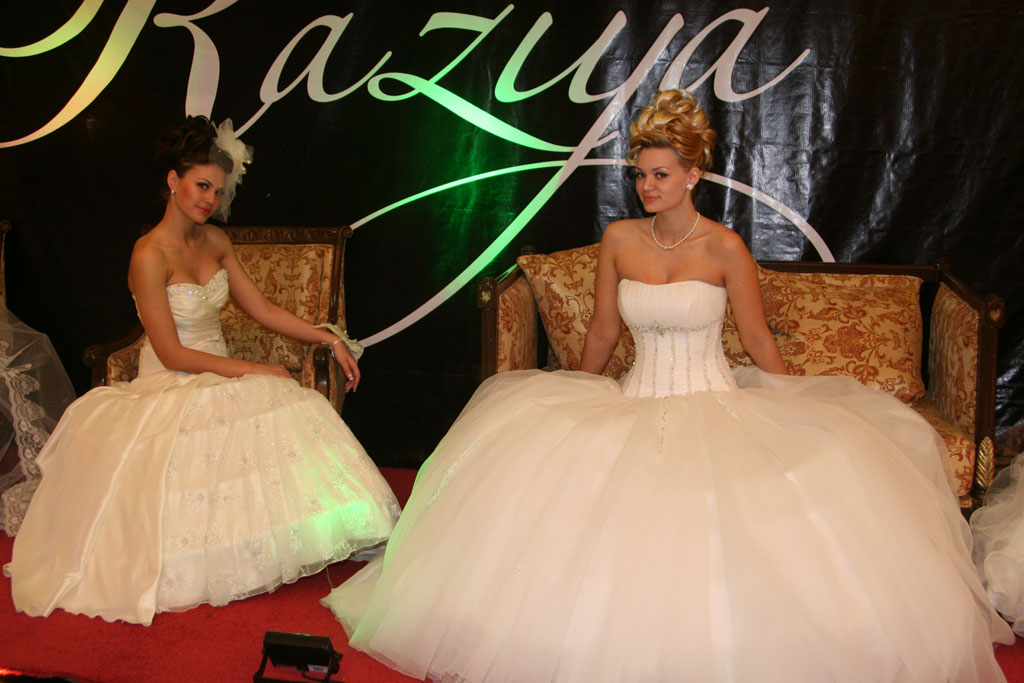 Желающие посмотреть, как платье будет сидеть не только на манекенах, тут же на выставке могли увидеть свадебные наряды на четырех девушках-моделях.