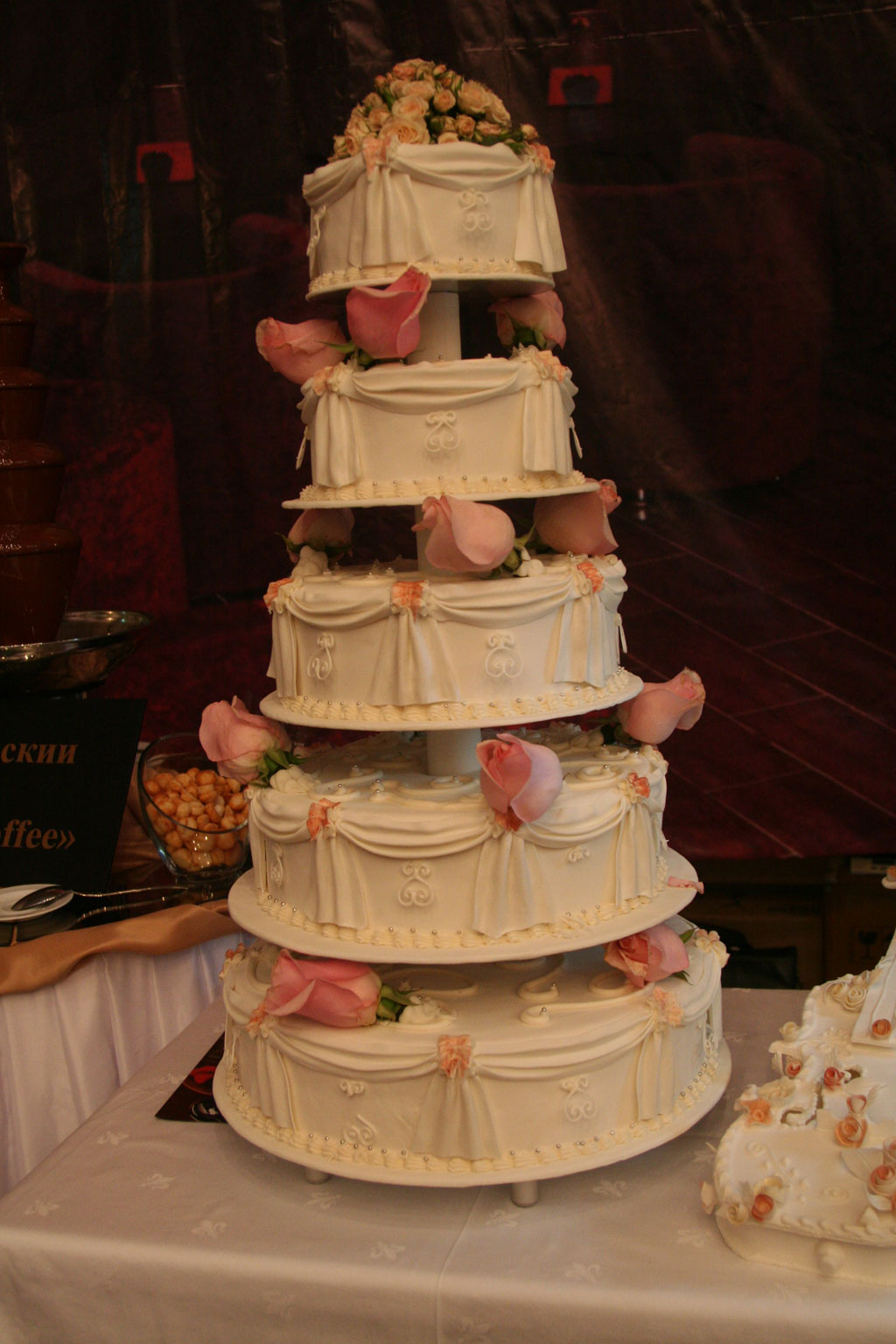 Великолепие цен и товаров гости мероприятия осмысливали в импровизированном буфете. Заодно любовались кондитерскими изделиями, которые подаются к свадебному столу. Килограмм торта в несколько ярусов стоил 1000 тенге, но, как правило, вся конструкция весит не менее 15 кг. Также в Астане можно заказать конфеты, сделанные вручную, как это принято на свадьбах во Франции.