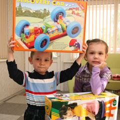 Как рассказала Олеся, маленький Вадим любит большие машины. С удовольствием садится за руль, крутит его, может залезть под капот. «А хотел бы собрать машину своими руками?» - спросили мы малыша. Когда он утвердительно кивнул, мы вручили ребенку конструктор «Находчивый автомобиль». В нем он должен собрать все детали автомобиля, включая игрушечный двигатель!