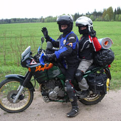 Участники № 4 - Евгения и Руслан ГРАБОВЧАК - узнали о нашем конкурсе, прочитав о нем на сайте www.ng.kz. Пять лет назад Евгения переехала из Костаная в Великий Новгород, где встретилась с Русланом. Его увлечение мотоциклами и мототуризмом передалось и ей.