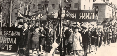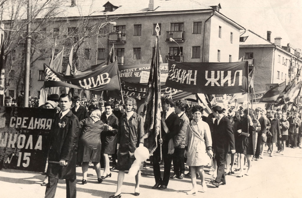 1968 г. Ученики СШ № 15 на первомайской демонстрации